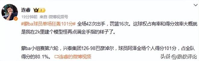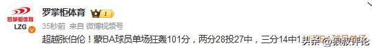 博主羅掌柜體育發(fā)文點(diǎn)評(píng):超越張伯倫!蒙BA球員單場(chǎng)狂轟101分,兩分28投27中,三分14中11。
