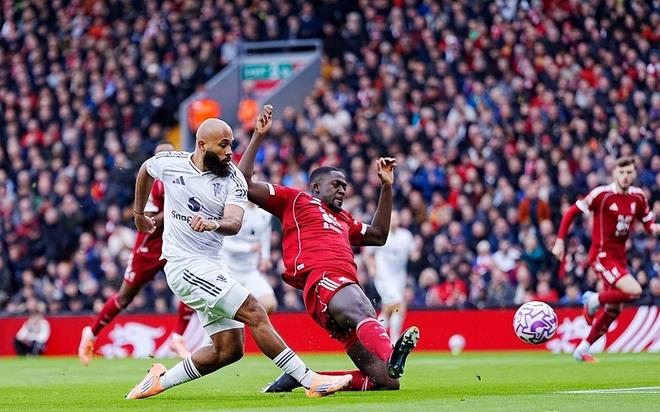 場上平衡打破之后,2隊(duì)反而進(jìn)入了對攻的節(jié)奏;第14分鐘,薩拉赫任意球送到禁區(qū),范戴克頭球攻門頂偏;第20分鐘,薩拉赫中圈快速反擊直塞,加克波帶出角度甩開防守后兜射擊中立柱;第24分鐘,曼聯(lián)也打出一次精彩反擊,迪亞洛右路高速前插下底回敲,B費(fèi)無人盯防插上推射,皮球同樣被立柱拒絕。