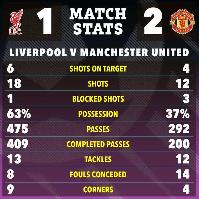 這是曼聯(lián)今年3月以來首次在英超客場(chǎng)贏球,亦是2016年1月之后首次在客場(chǎng)戰(zhàn)勝利物浦,終結(jié)了在安菲爾德球場(chǎng)連續(xù)9場(chǎng)聯(lián)賽不勝(5平4負(fù))的尷尬紀(jì)錄。